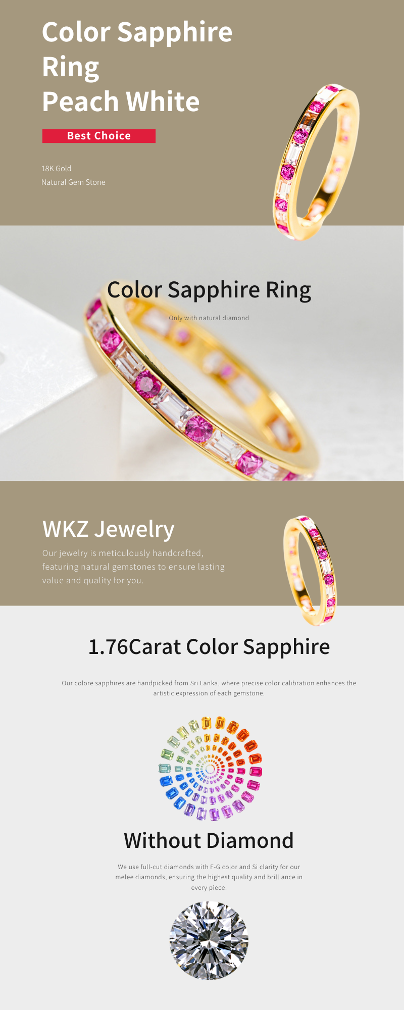 Color Sapphire Ring Peach White
